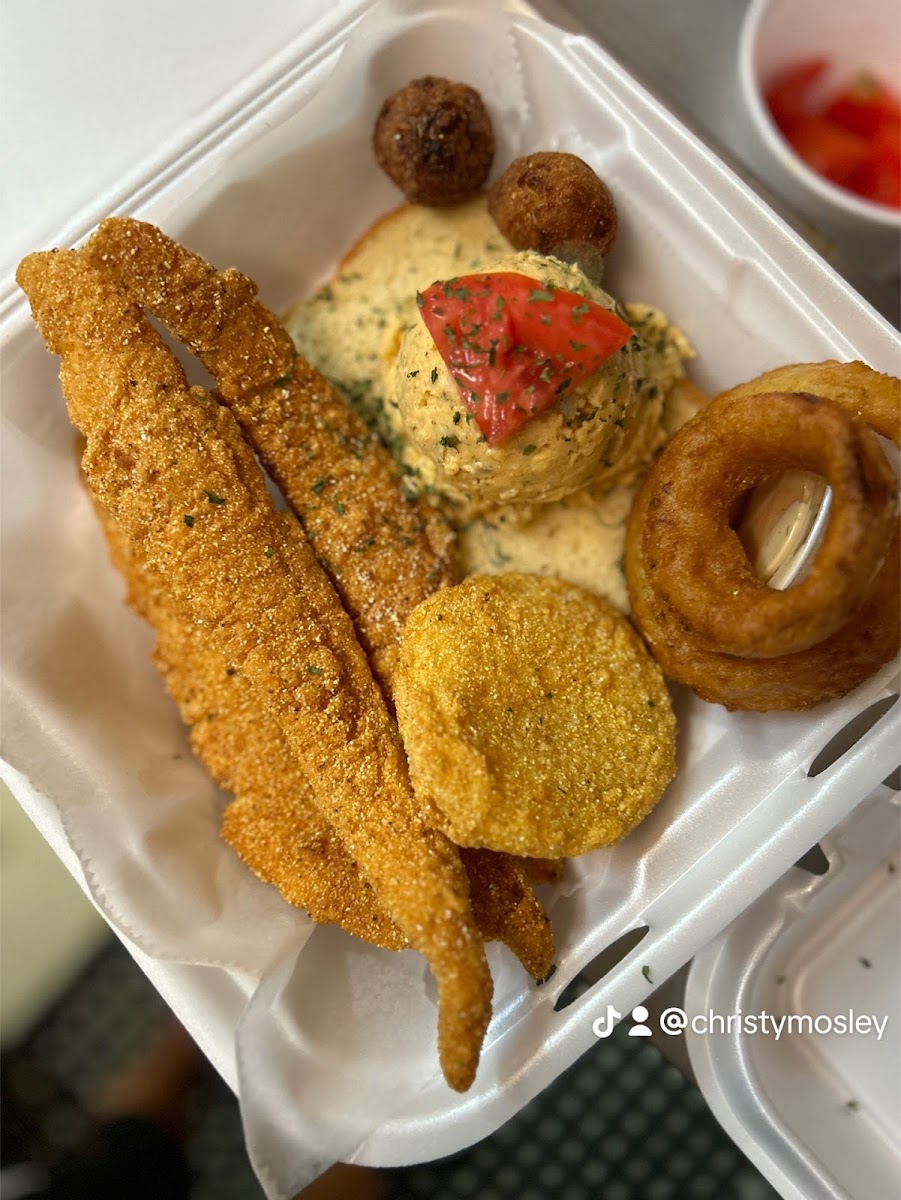 OMG! So good! It’s worth getting off the highway! We had Cajun mac and cheese special and open face shrimp platter. Best we’ve ever had!! You won’t be sorry. Enjoyed sitting out in their new patio too!!